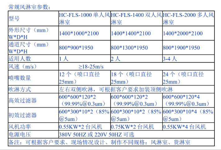 普洱風(fēng)淋室價格:潔凈風(fēng)淋室規(guī)格尺寸及配置特點(diǎn):