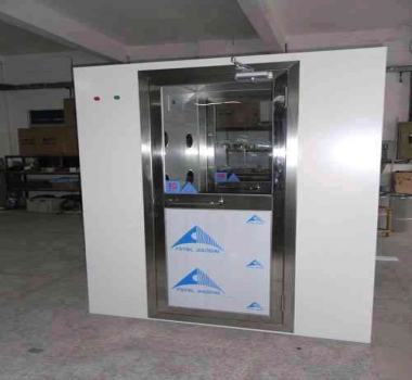 防爆風淋室是人/貨進入潔凈室所必需的通道,為了減少由于人/貨進出帶來的大量塵埃粒子,在潔凈室的入口處安裝功能齊全的“氣閘室”可以減少空氣污染微粒的數量。風淋室內的空氣由風機的送風經初效過濾器進入靜壓箱,經高效空氣過濾器過濾后,潔凈空氣以22~25m/s的超強風速從風淋室的噴嘴高速噴出,噴嘴角度可調節,可有效地吹除人身或攜帶物品表面附著的塵埃,塵埃再回收進入初效空氣過濾器,如此循環可以達到風淋除塵的目的。